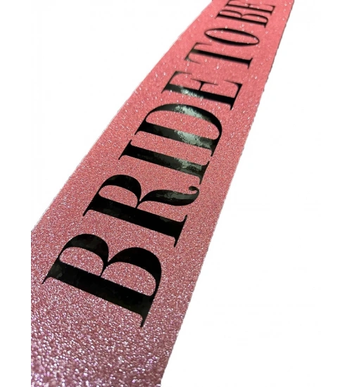 Pembe Üzeri Siyah Kalın Bride To Be Yazılı Simli Işıltılı Kuşak Kemer 10x80 cm