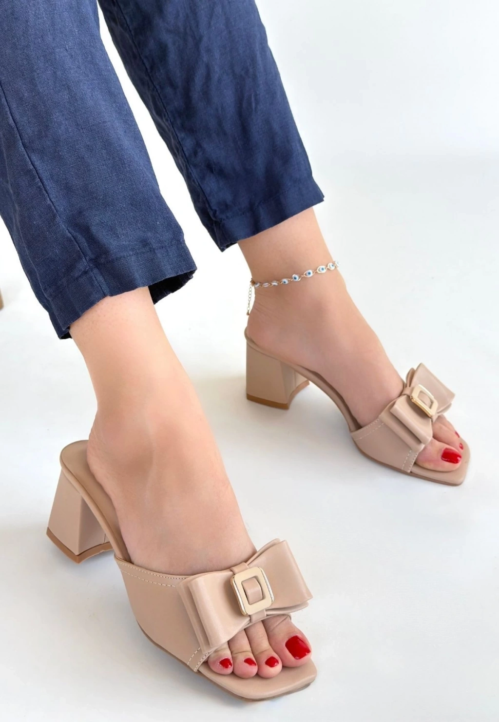 Caren Bej Cilt Topuklu Terlik
