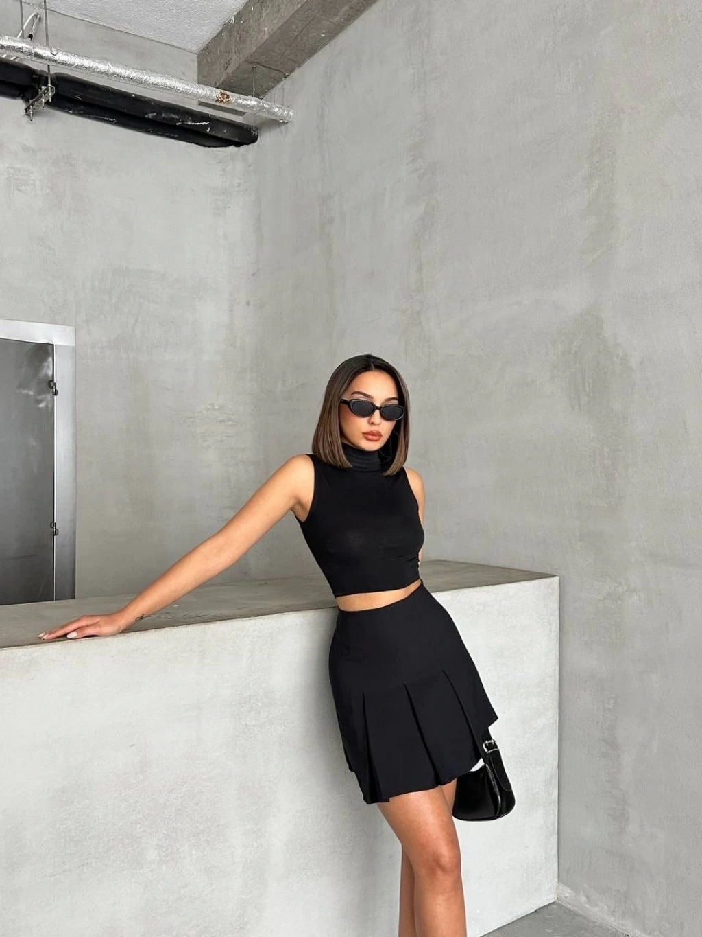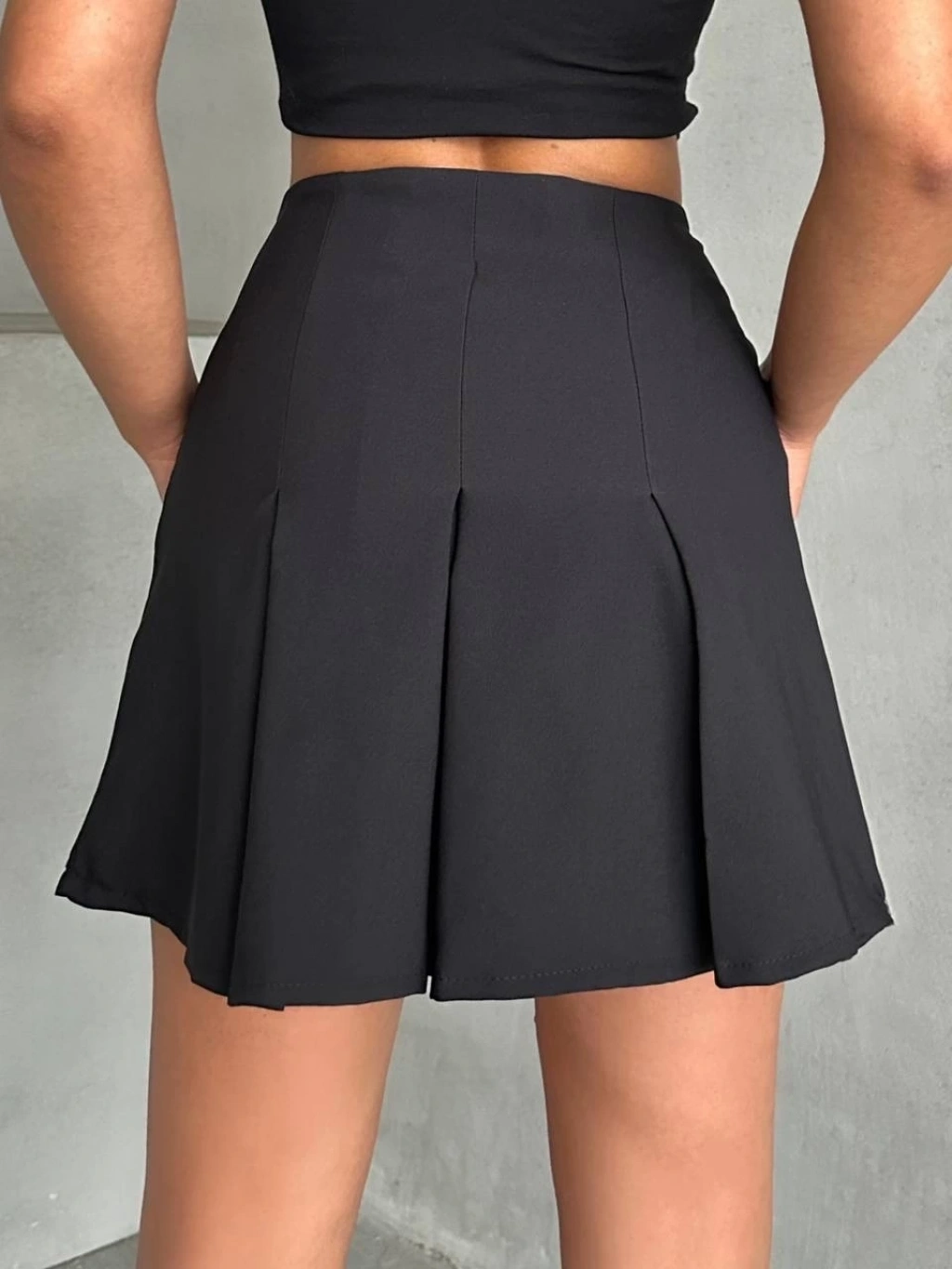 Deri cep garnili kaşe etek siyah h24604