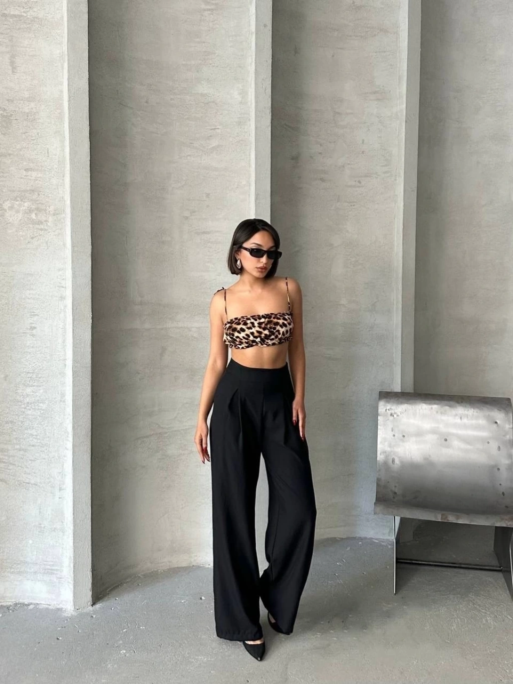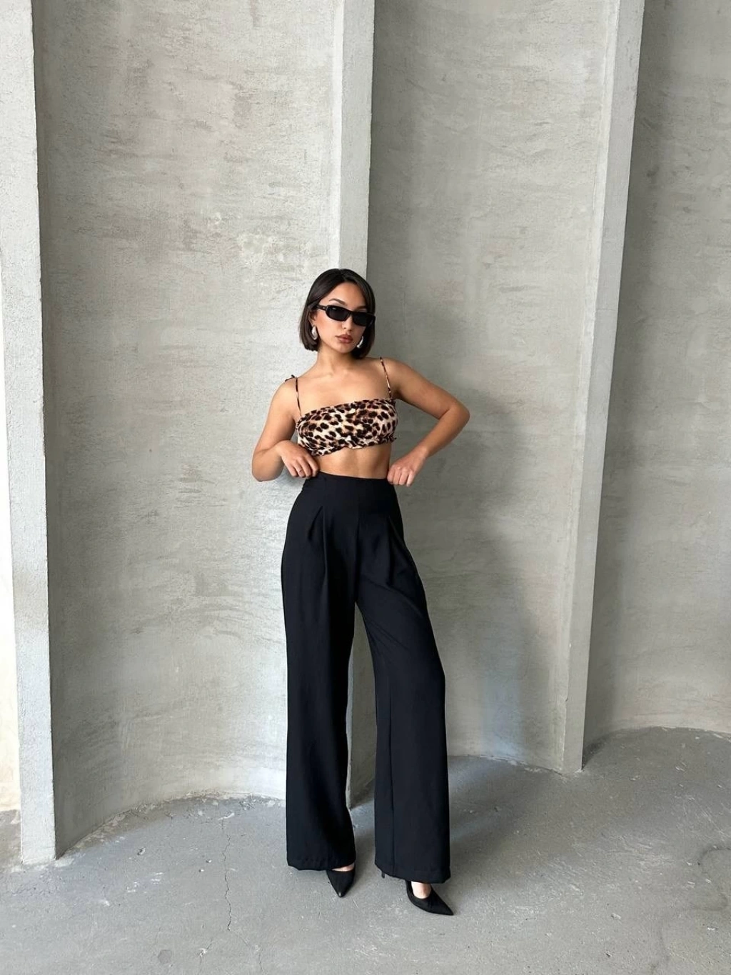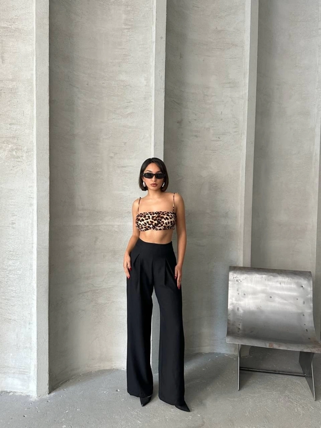 Cırtlı pantolon krep siyah pt