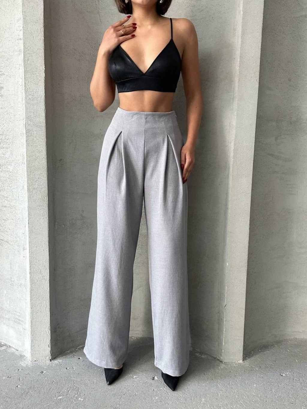 İspanyol yırtmaçlı paça deri pantolon bej hn