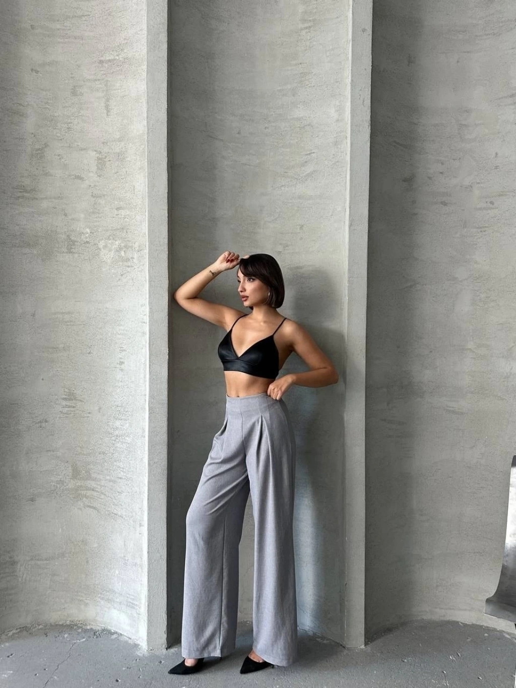 İspanyol yırtmaçlı paça deri pantolon siyah hn