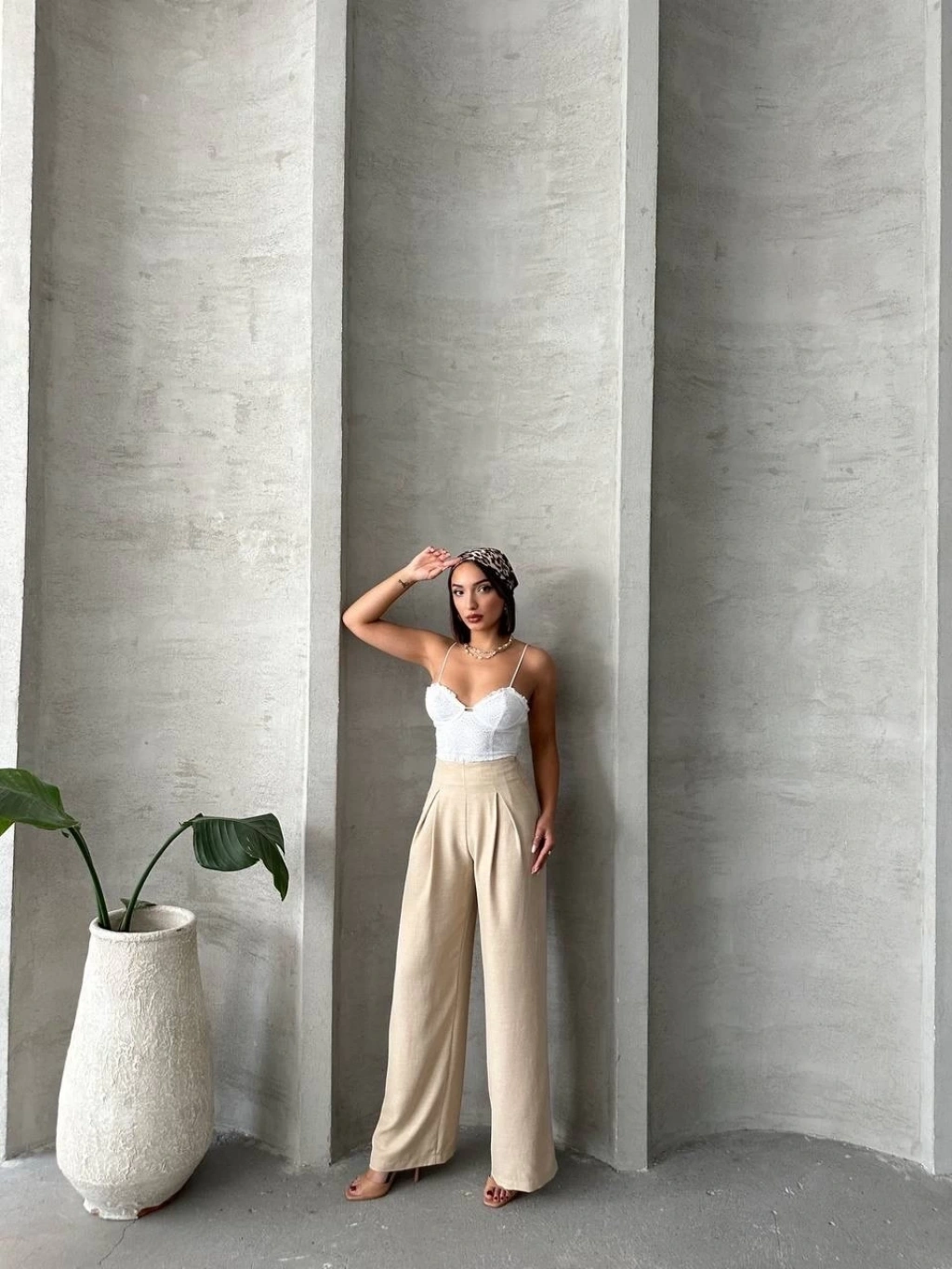 Cırtlı pantolon krep bej pt