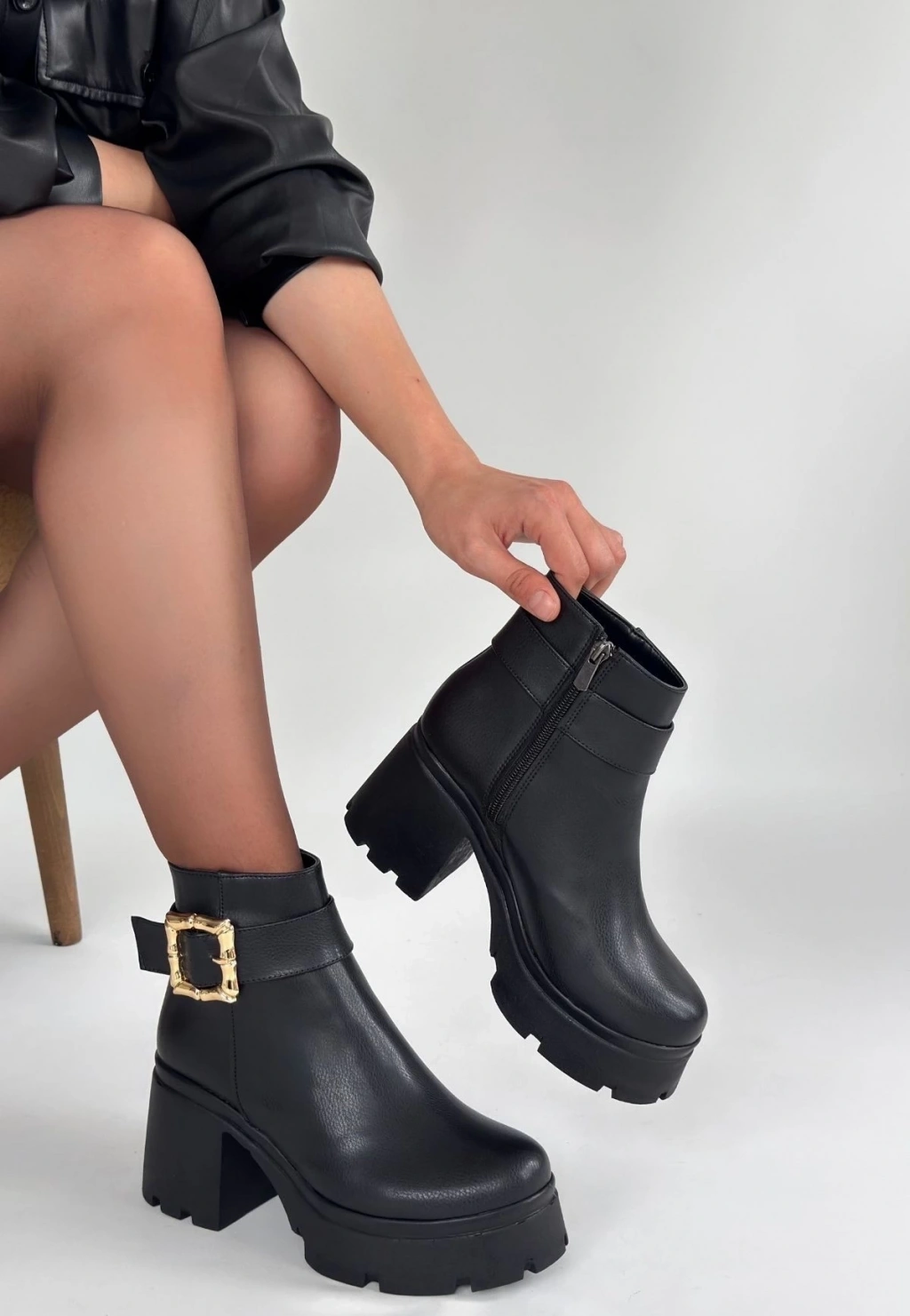 Kanda Siyah Cilt Topuklu Bot