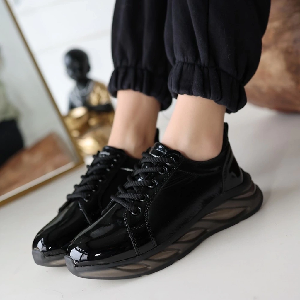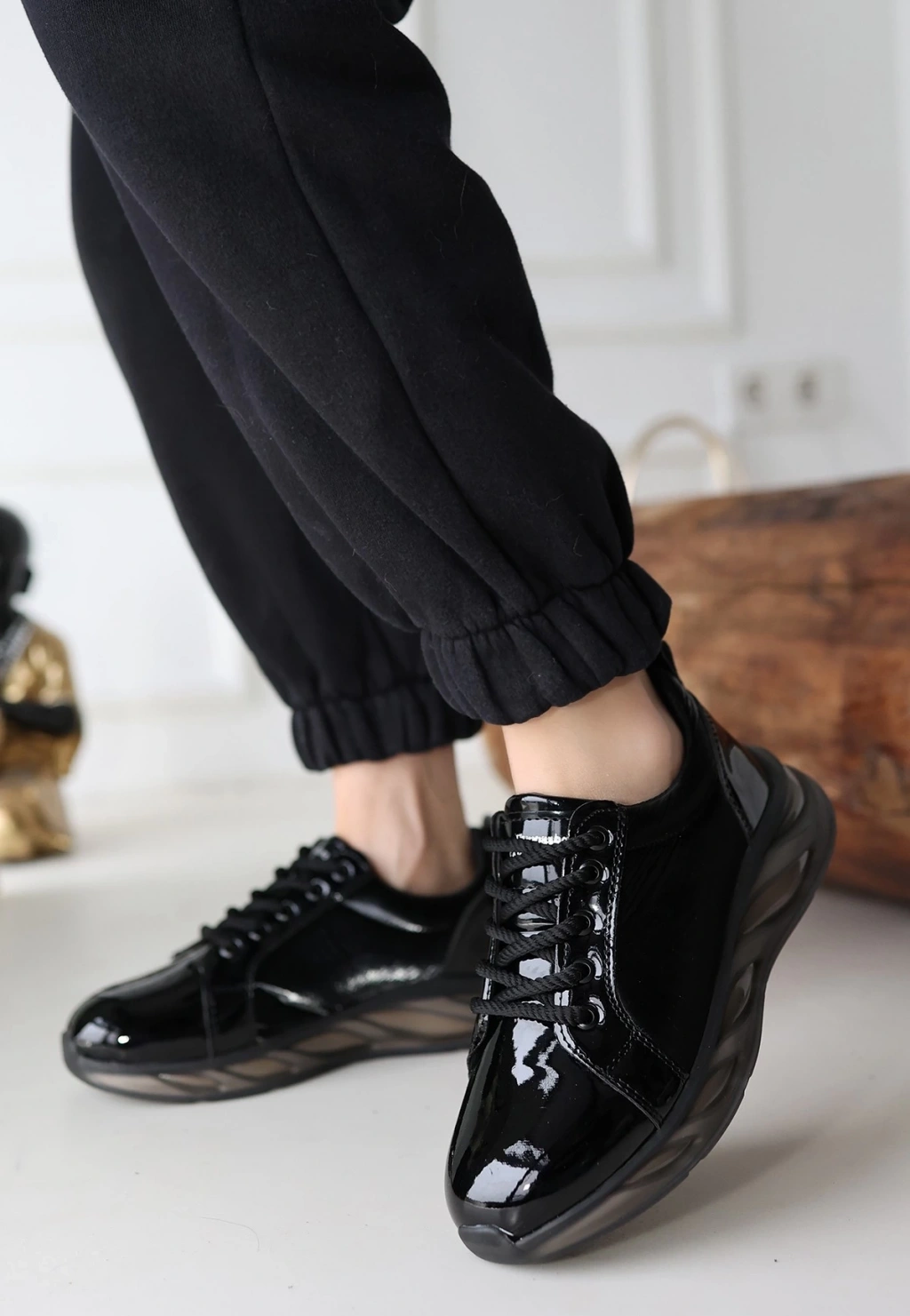 • Piona Siyah Rugan Gri Tabanlı Spor Ayakkabı
