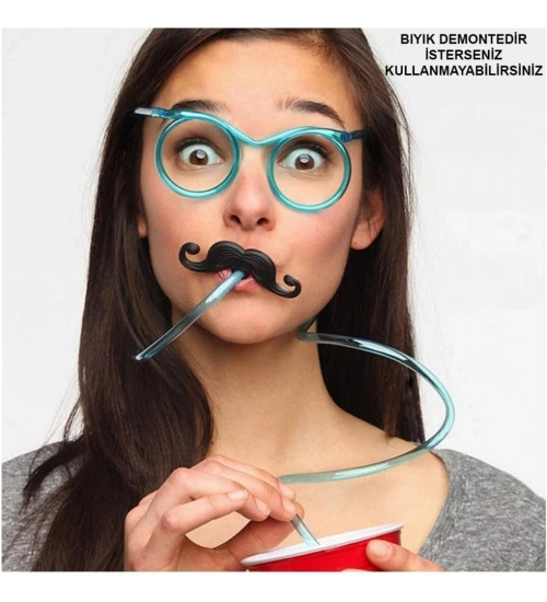 Pipetli Parti Gözlüğü - Çocuk ve Yetişkin Bıyıklı Pipet Gözlük Mavi Renk 18x14 cm