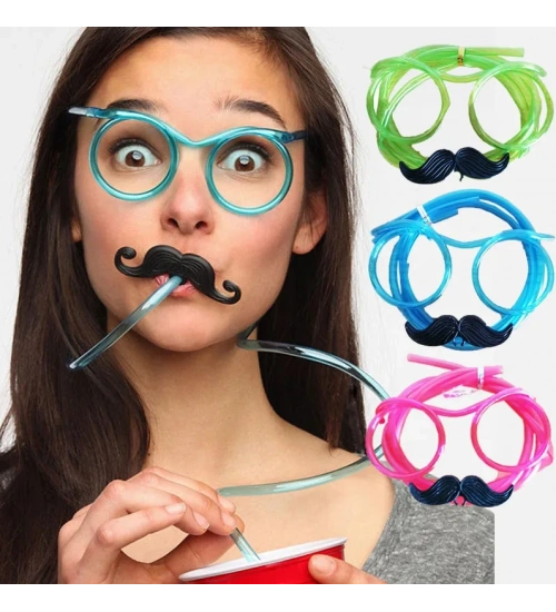 Pipetli Parti Gözlüğü - Çocuk ve Yetişkin Bıyıklı Pipet Gözlük Yeşil Renk 18x14 cm