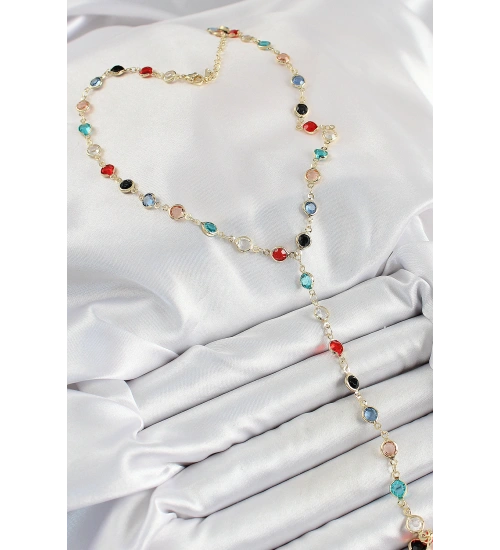 Pirinç Asorti Model Gold Renk Zirkon Taşlı Y Kolye