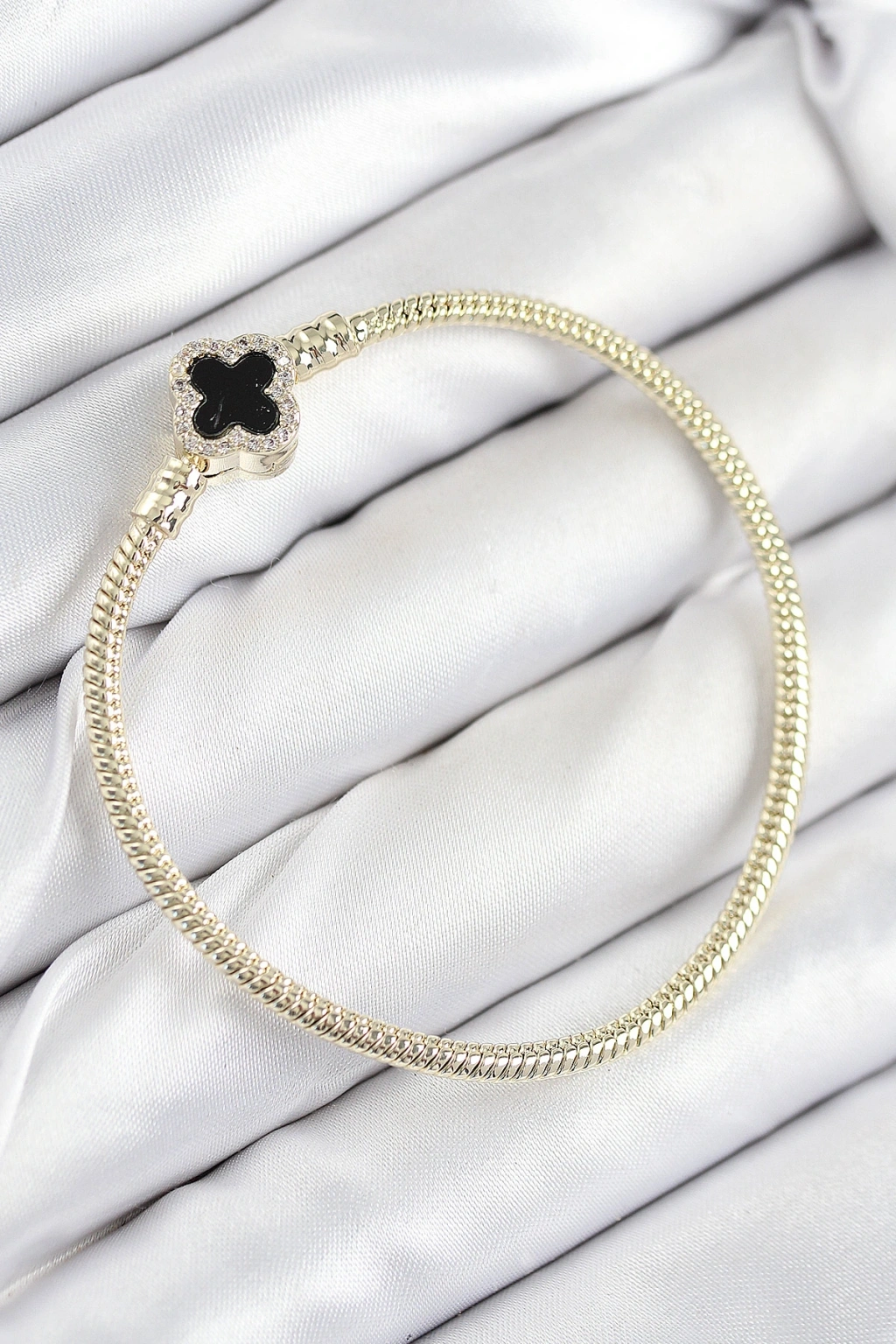 Pirinç Charm Zirkon Taşlı Yonca Model Gold Renk Kadın Bileklik