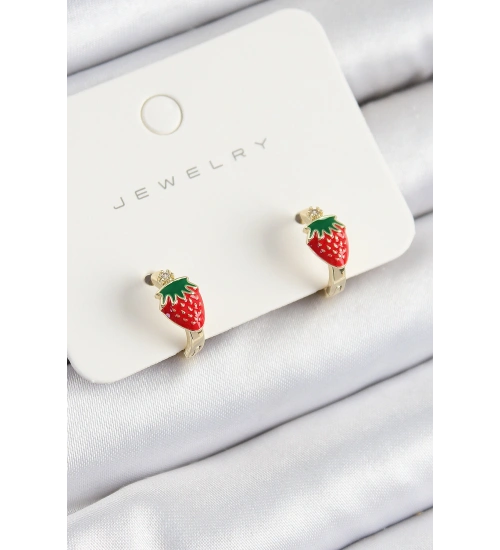 Pirinç Çilek Model Gold Renk Çocuk Küpe