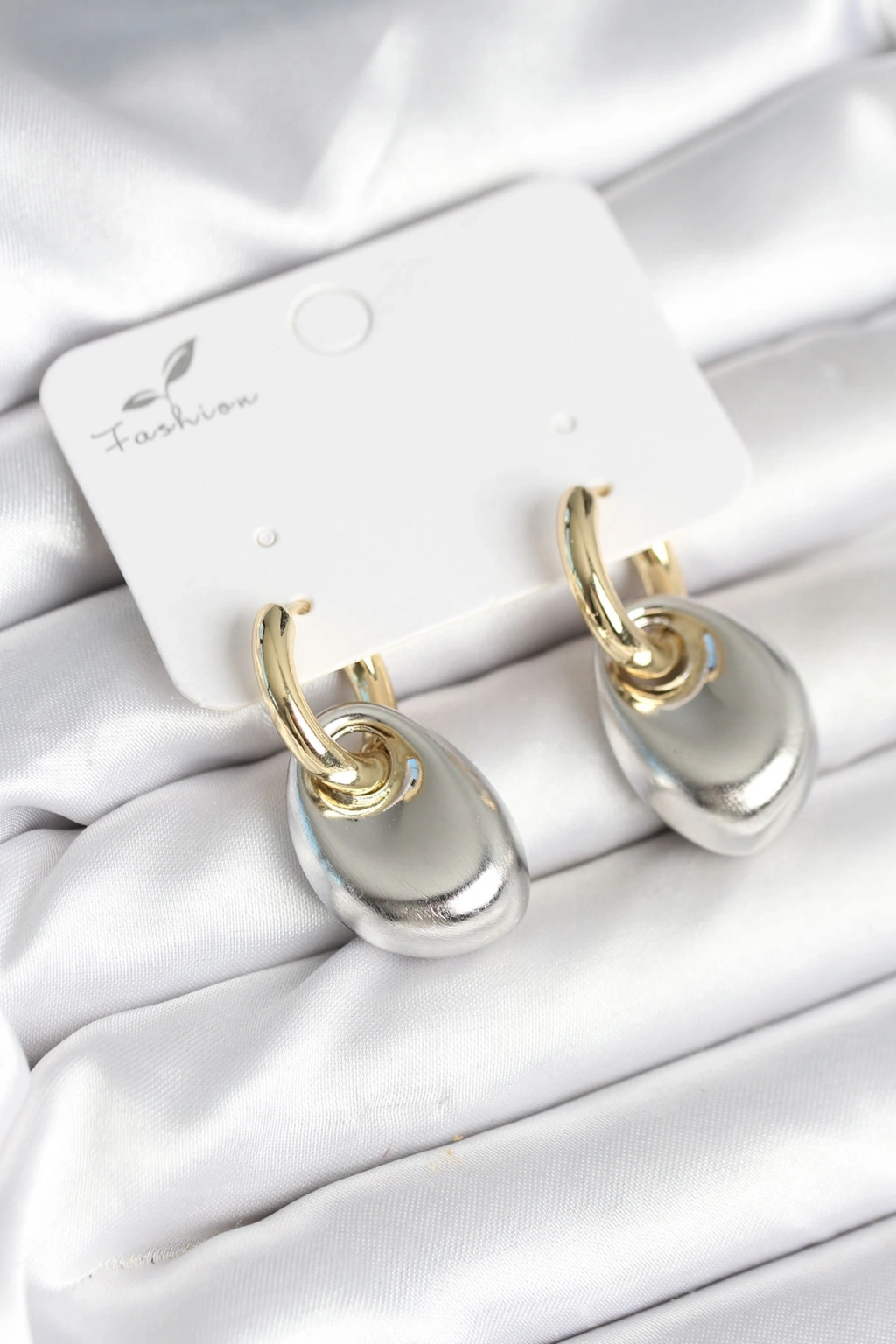 Pirinç Damla Model Gümüş Gold Renk Kadın Küpe