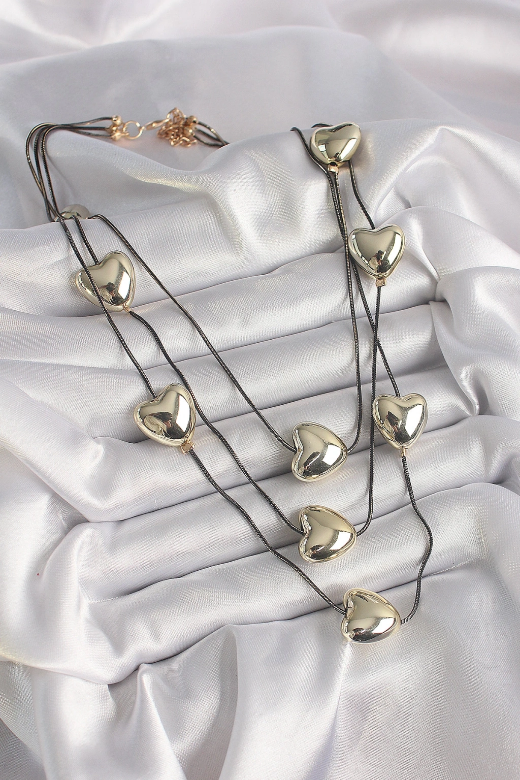 Pirinç Füme Renk Zincir 3d Gold Renk Kalp Model Kadın Kolye