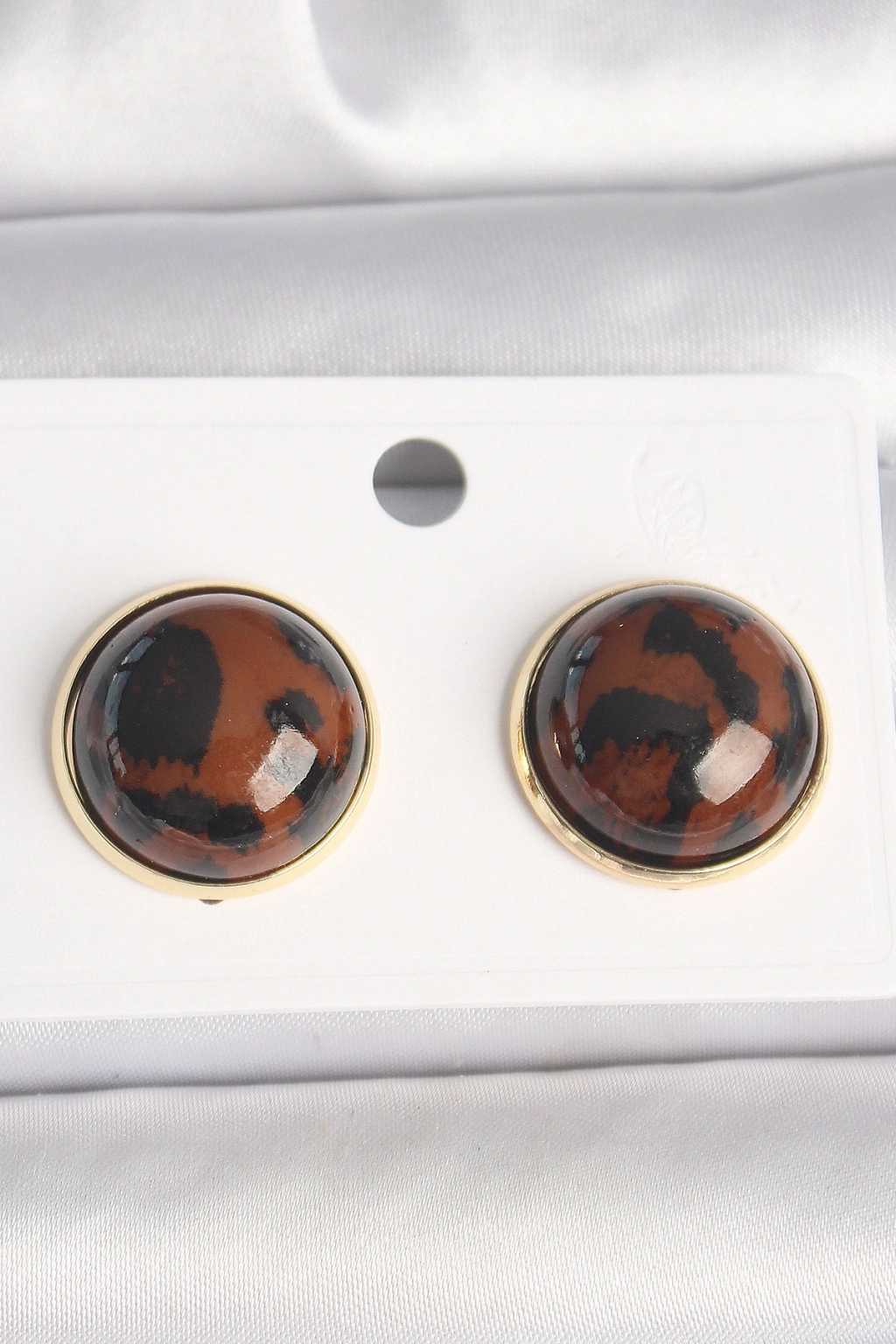 Pirinç Gold Renk 3D Daire Leopar Model Kadın Küpe