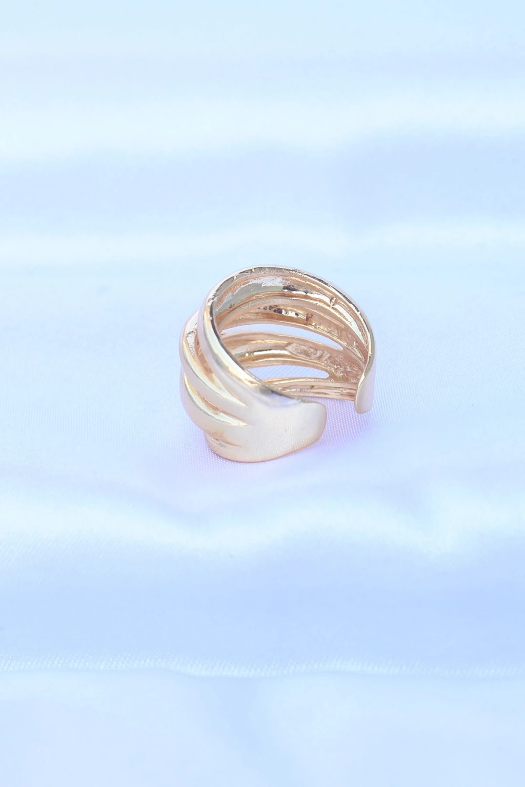 Pirinç Gold Renk Ayarlanabilir Tırtıklı Bombe Yüzük