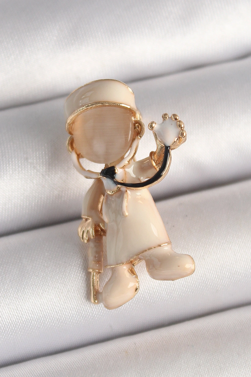 Pirinç Gold Renk Beyaz Mineli Doktor Model Kadın Broş