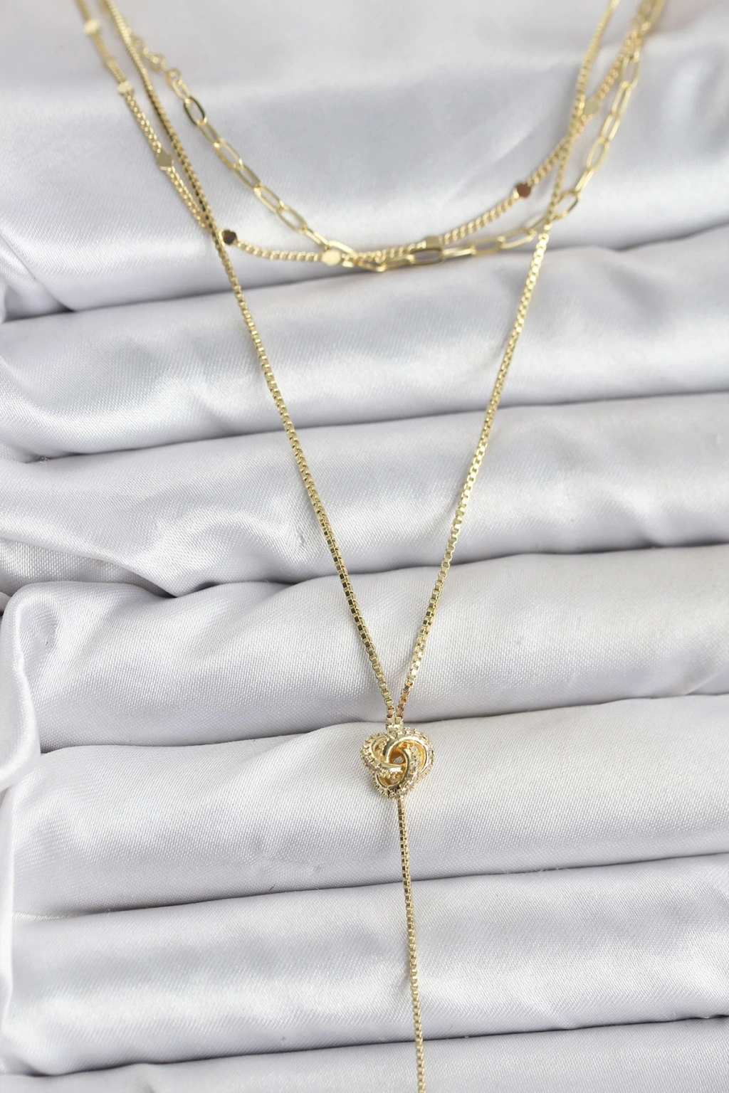 Pirinç Gold Renk Düğüm Model Detaylı 3'lü Kombin Y Kadın Kolye