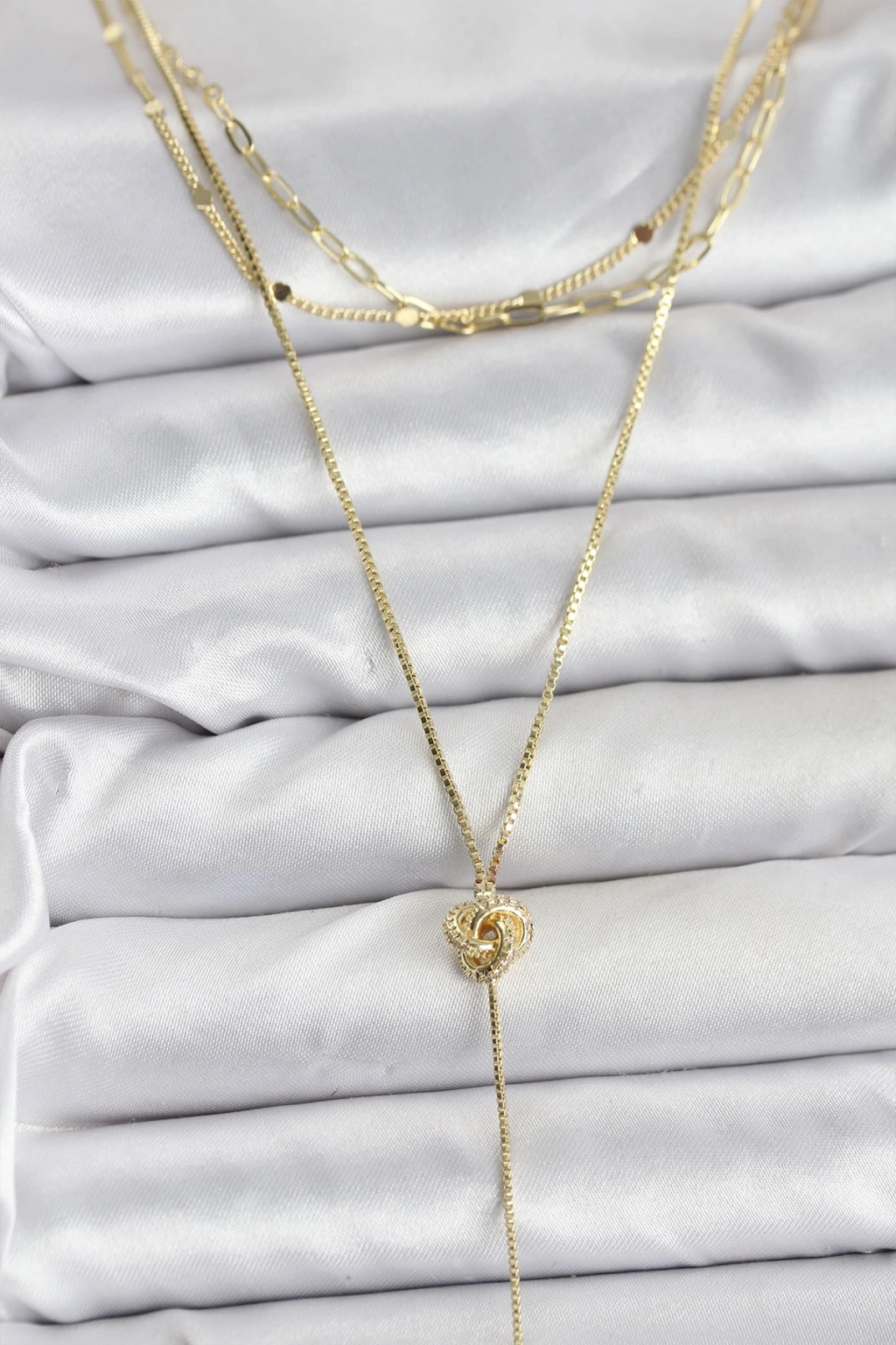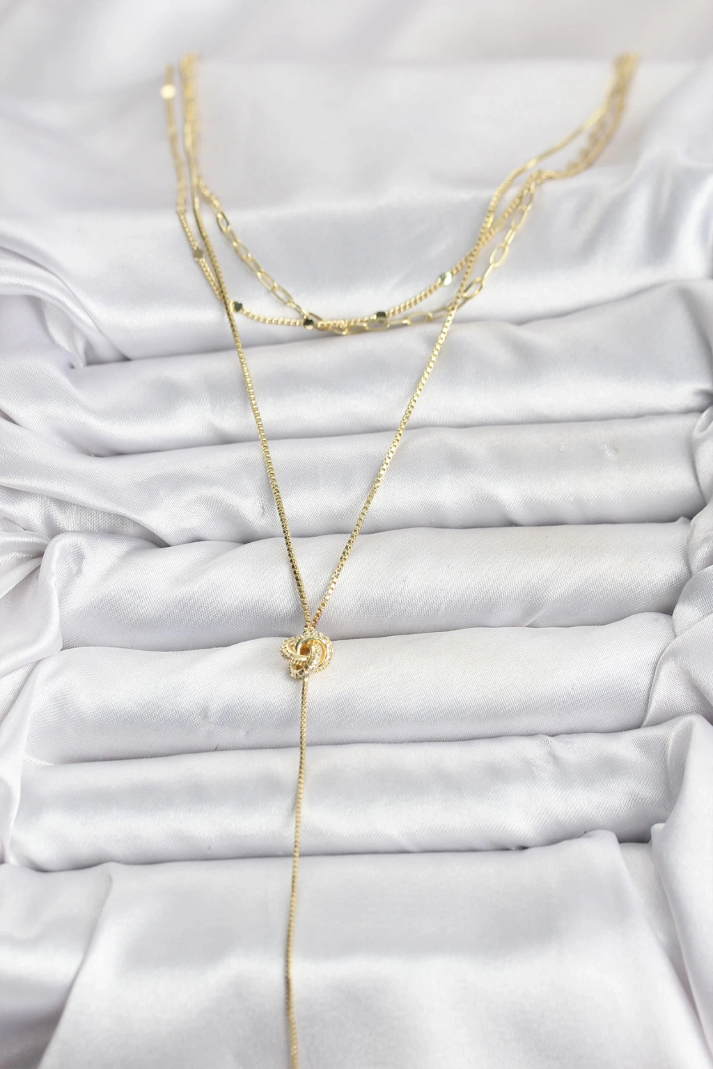 Pirinç Gold Renk Düğüm Model Detaylı 3'lü Kombin Y Kadın Kolye