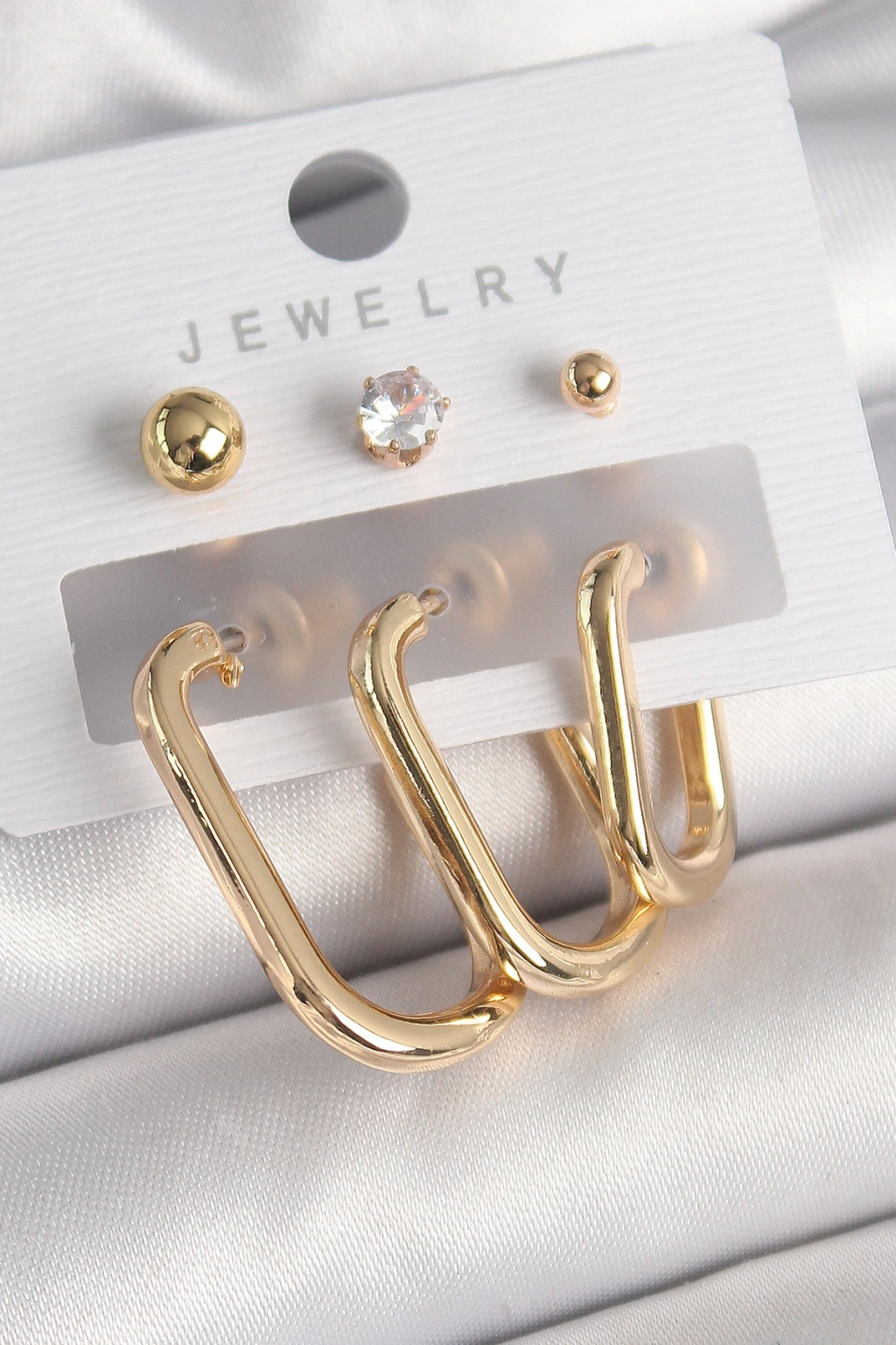 Pirinç Gold Renk Halka Model Zirkon Taş Topçuk Detay Kadın Küpe Seti
