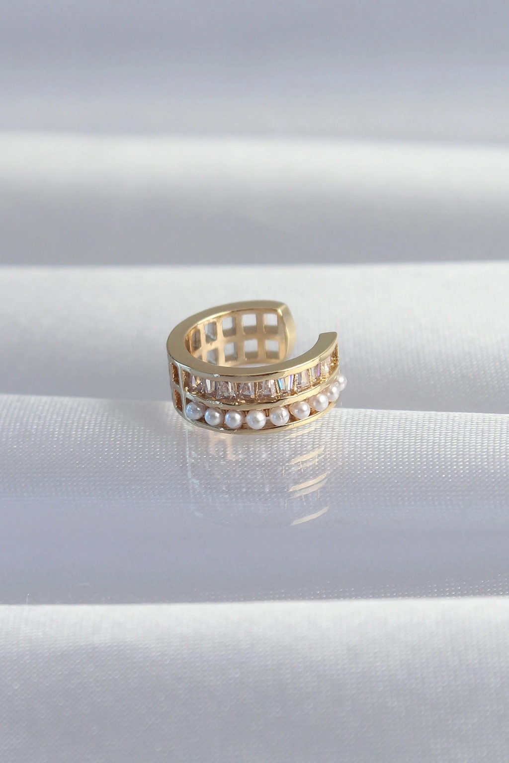 Pirinç Gold Renk İncili Baget Taşlı Earcuff Küpe