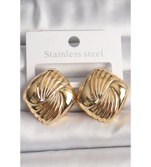Pirinç Gold Renk İşlemeli Kare Model Kadın Küpe