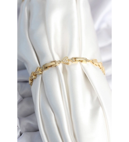 Pirinç Gold Renk Kalp Model Kadın Bileklik