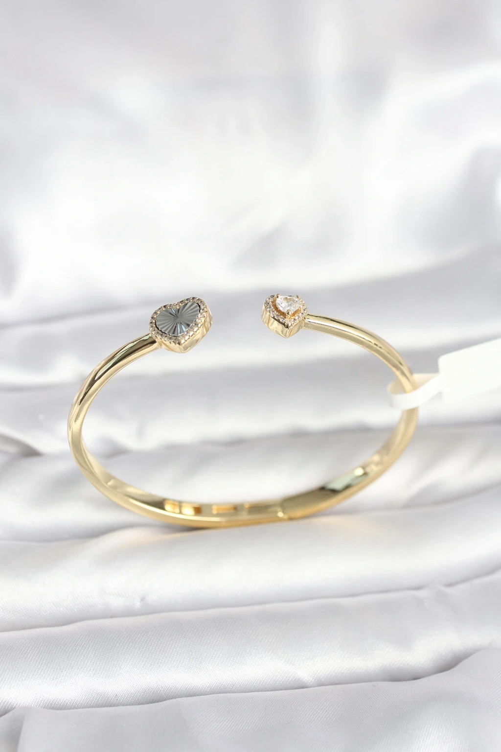Pirinç Gold Renk Kalpli Model Kadın Kelepçe Bileklik