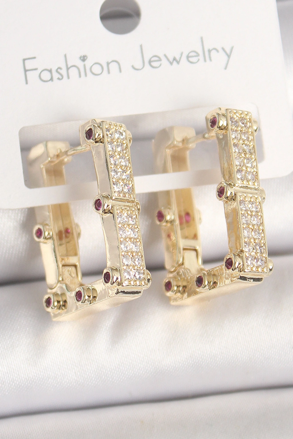 Pirinç Gold Renk Kare Zirkon Taşlı Kadın Küpe