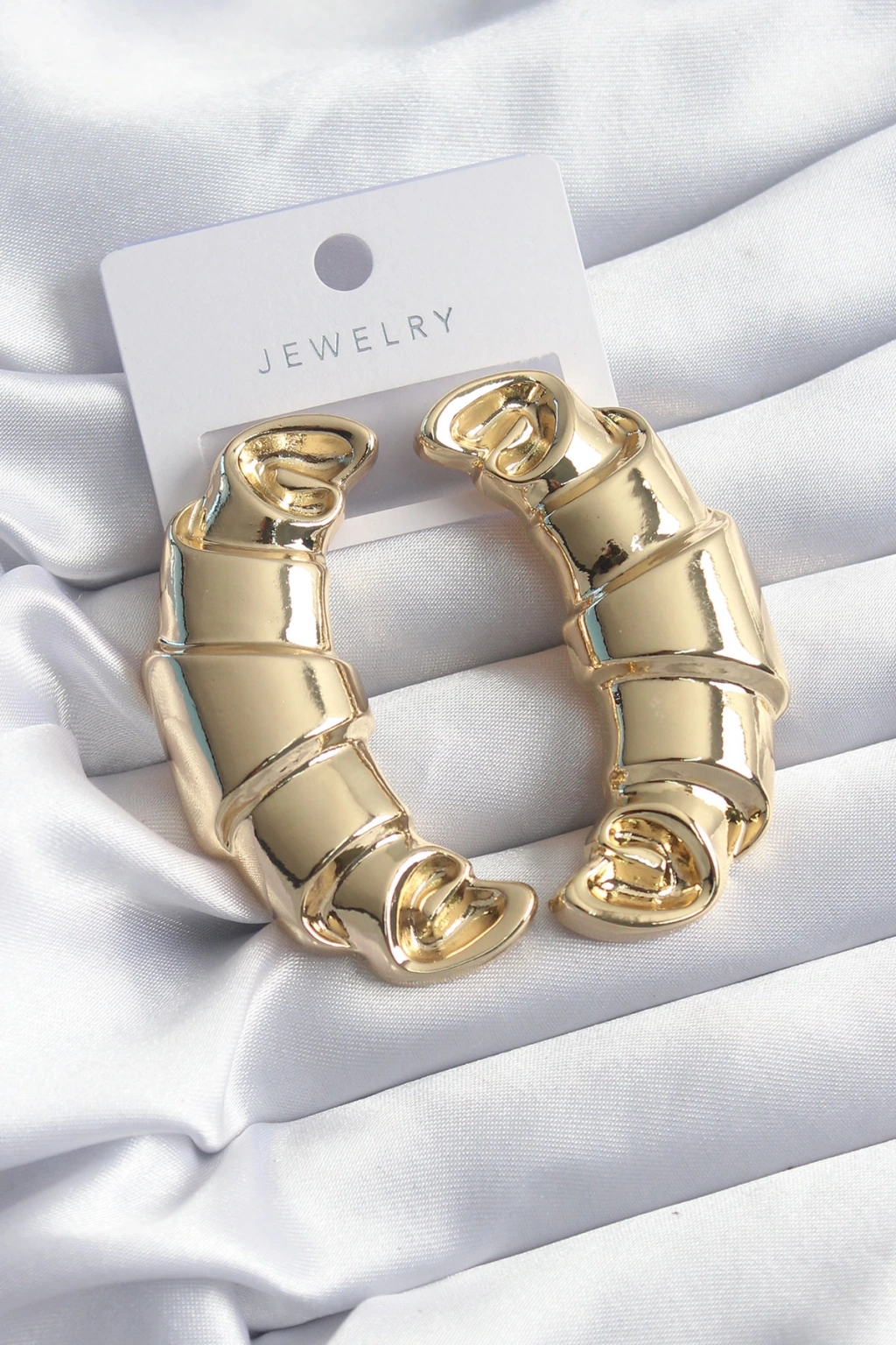 Pirinç Gold Renk Kruvasan Model Kadın Küpe