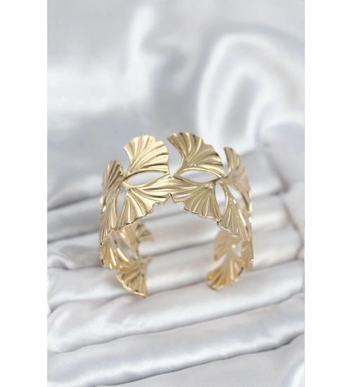 Pirinç Gold Renk Levha Yelpaze Model Kadın Bileklik