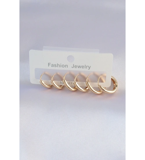 Pirinç Gold Renk Oval Küpe Seti