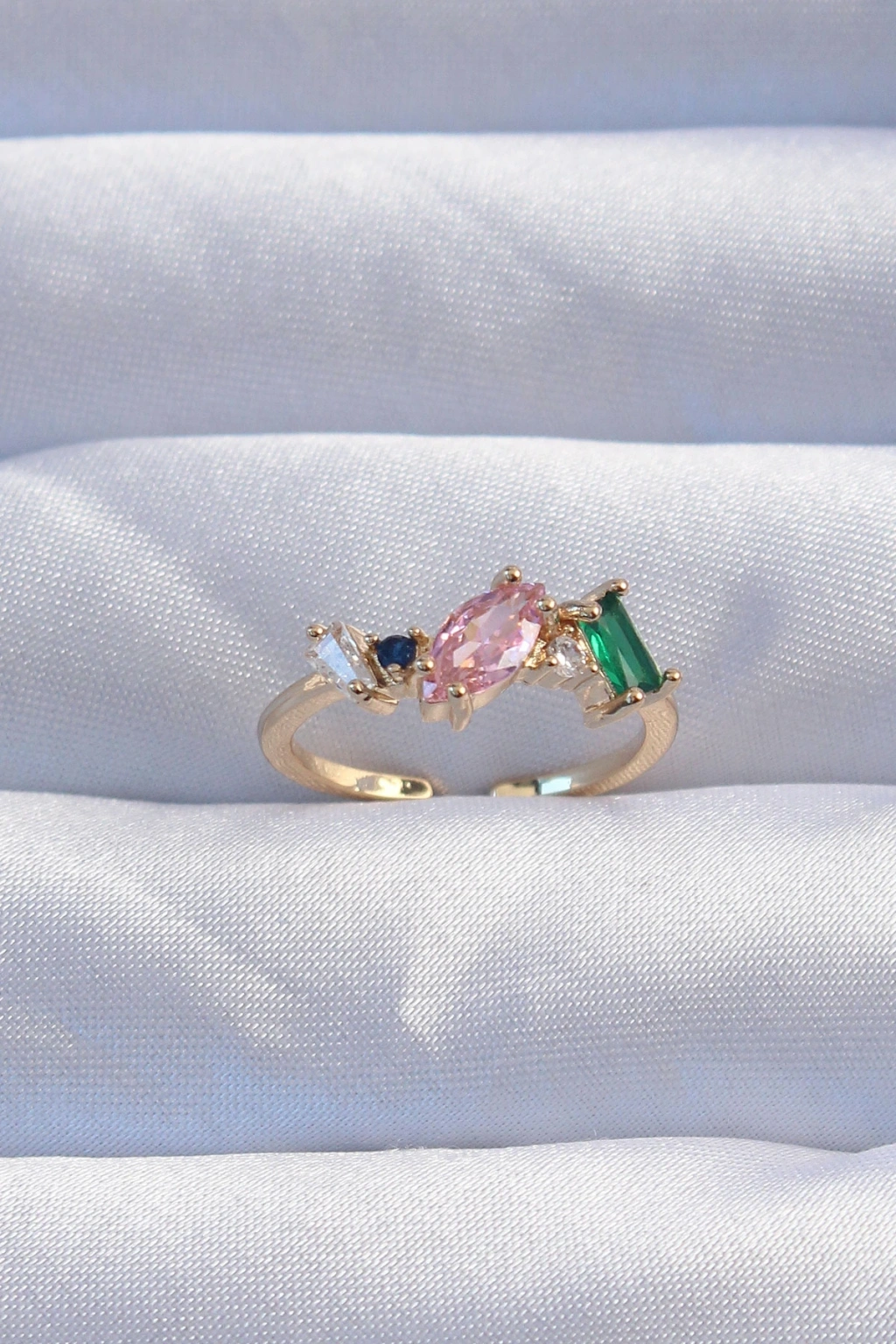 Pirinç Gold Renk Renkli Zirkon Taşlı Ayarlanabilir Yüzük
