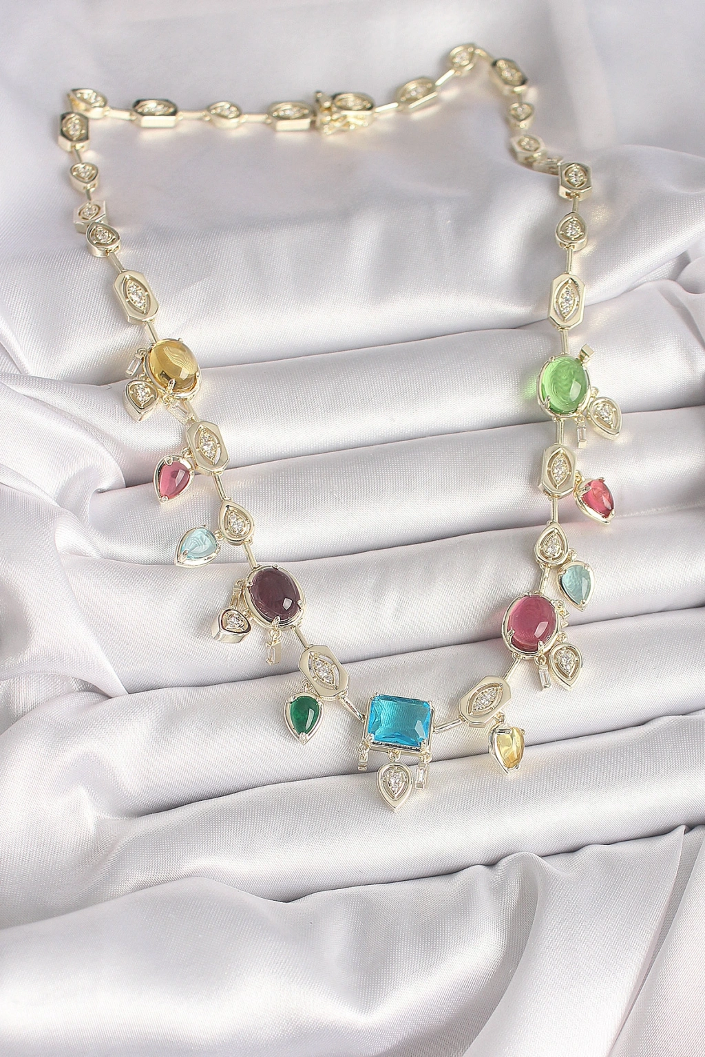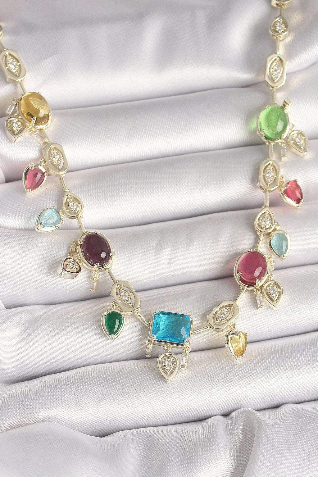 Pirinç Gold Renk Renli Zirkon Taşlı VIP Seri Kadın Kolye