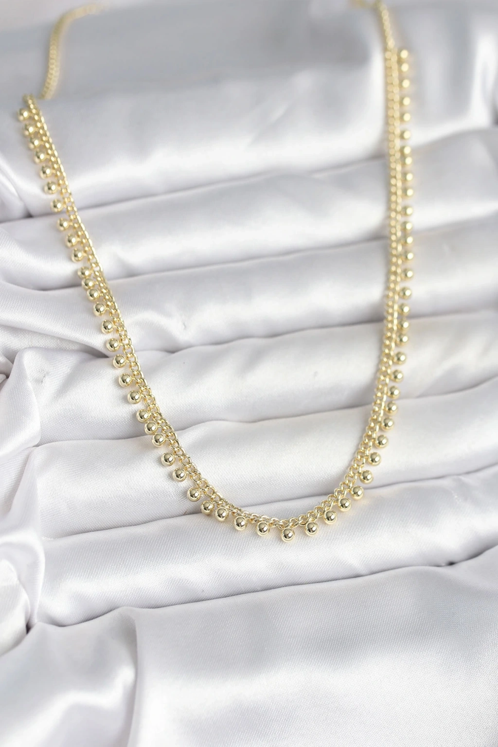 Pirinç Gold Renk Sıralı Topçuk Model Kadın Kolye