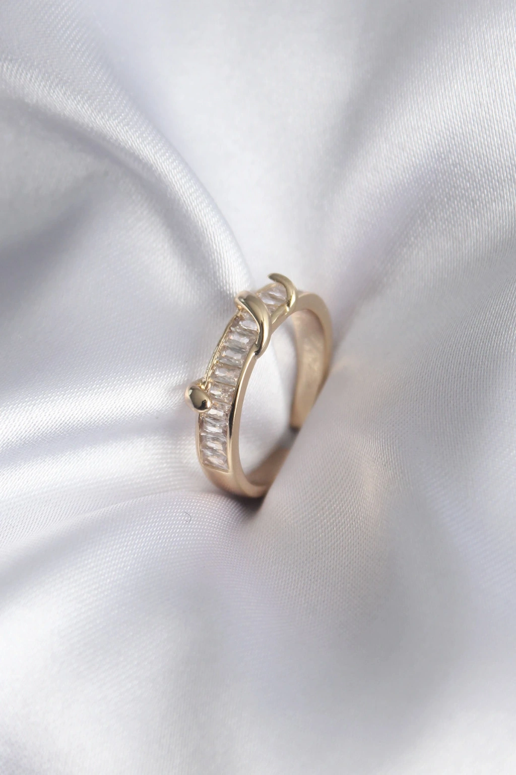 Pirinç Gold Renk Su Yolu Zirkon Taşlı Model Kadın Yüzük