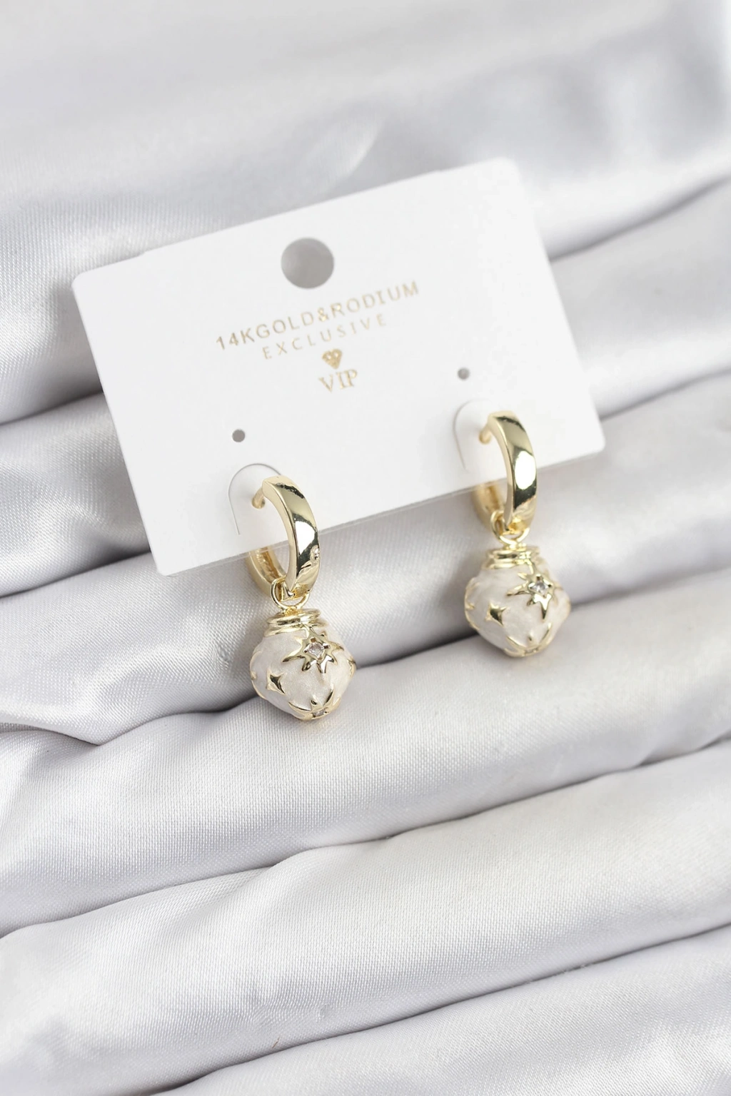 Pirinç Gold Renk Topçuk Model Mineli Halka Kadın Küpe