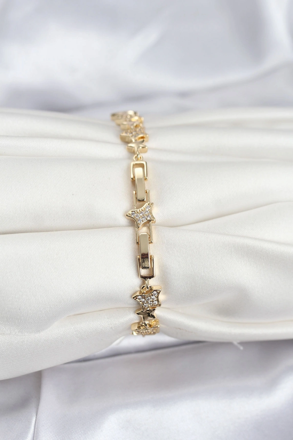 Pirinç Gold Renk VIP Seri Yıldız Model Zirkon Taşlı Kadın Bileklik