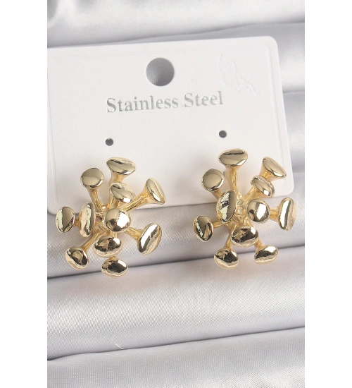 Pirinç Gold Renk Virüs Figür Model Kadın Küpe