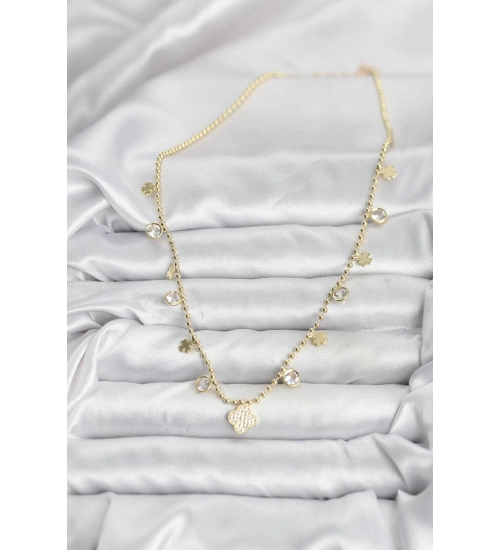 Pirinç Gold Renk Yonca Model Kadın Kolye