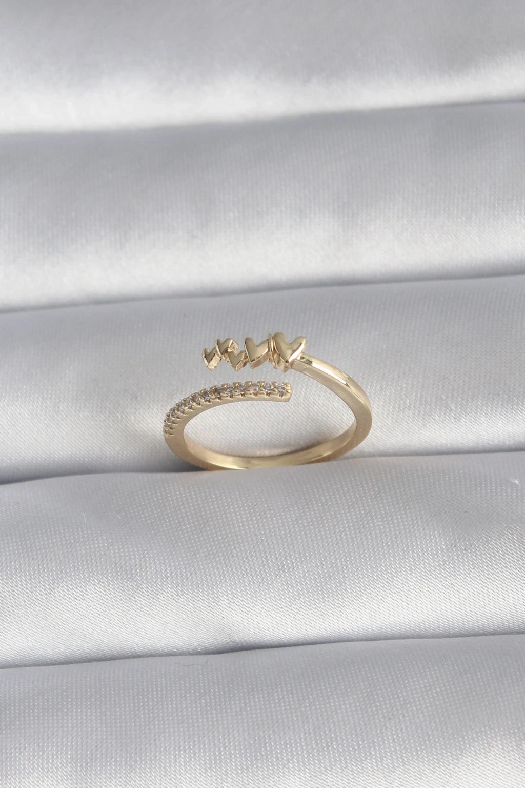 Pirinç Gold Renk Zirkon Taş Detay Kalp Model Kadın Yüzük