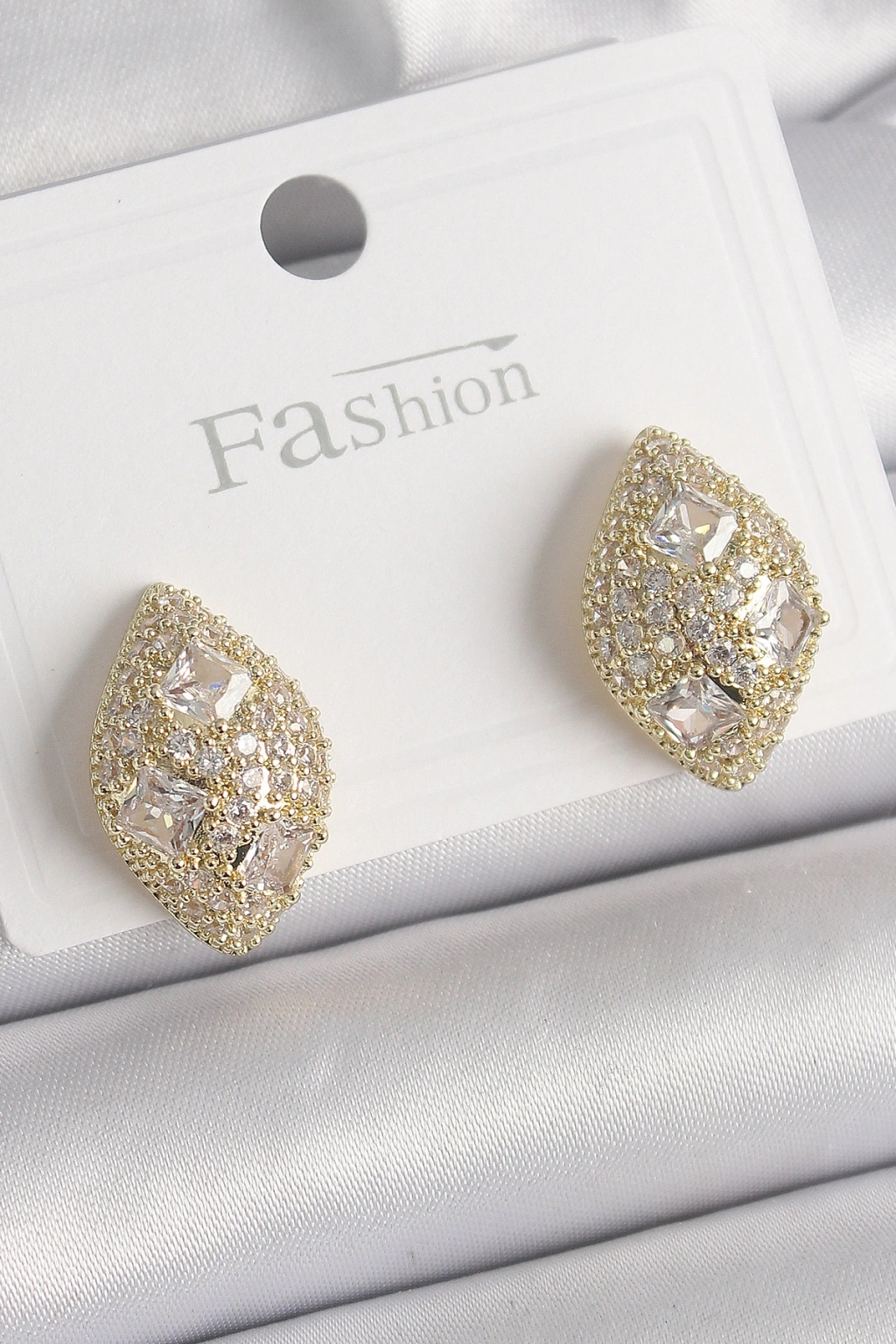 Pirinç Gold Renk Zirkon Taş İşlemeli Damla Model Kadın Küpe