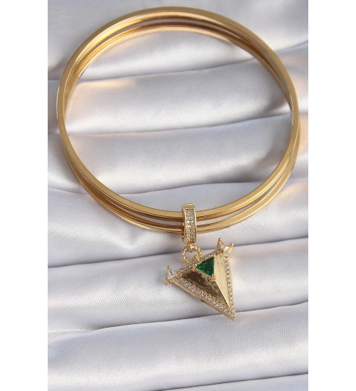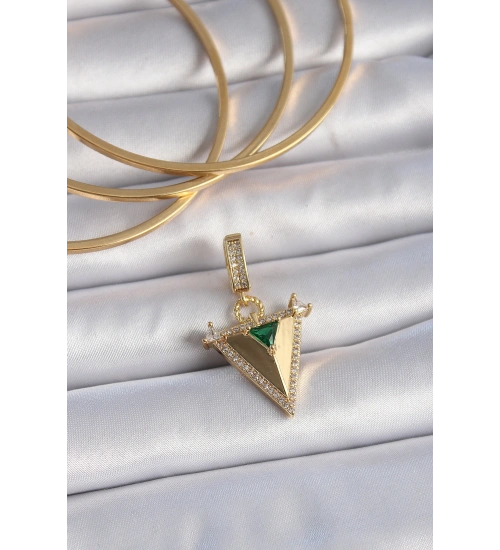Pirinç Gold Renk Zirkon Taşlı 3D Üçgen Model Ajda Charm