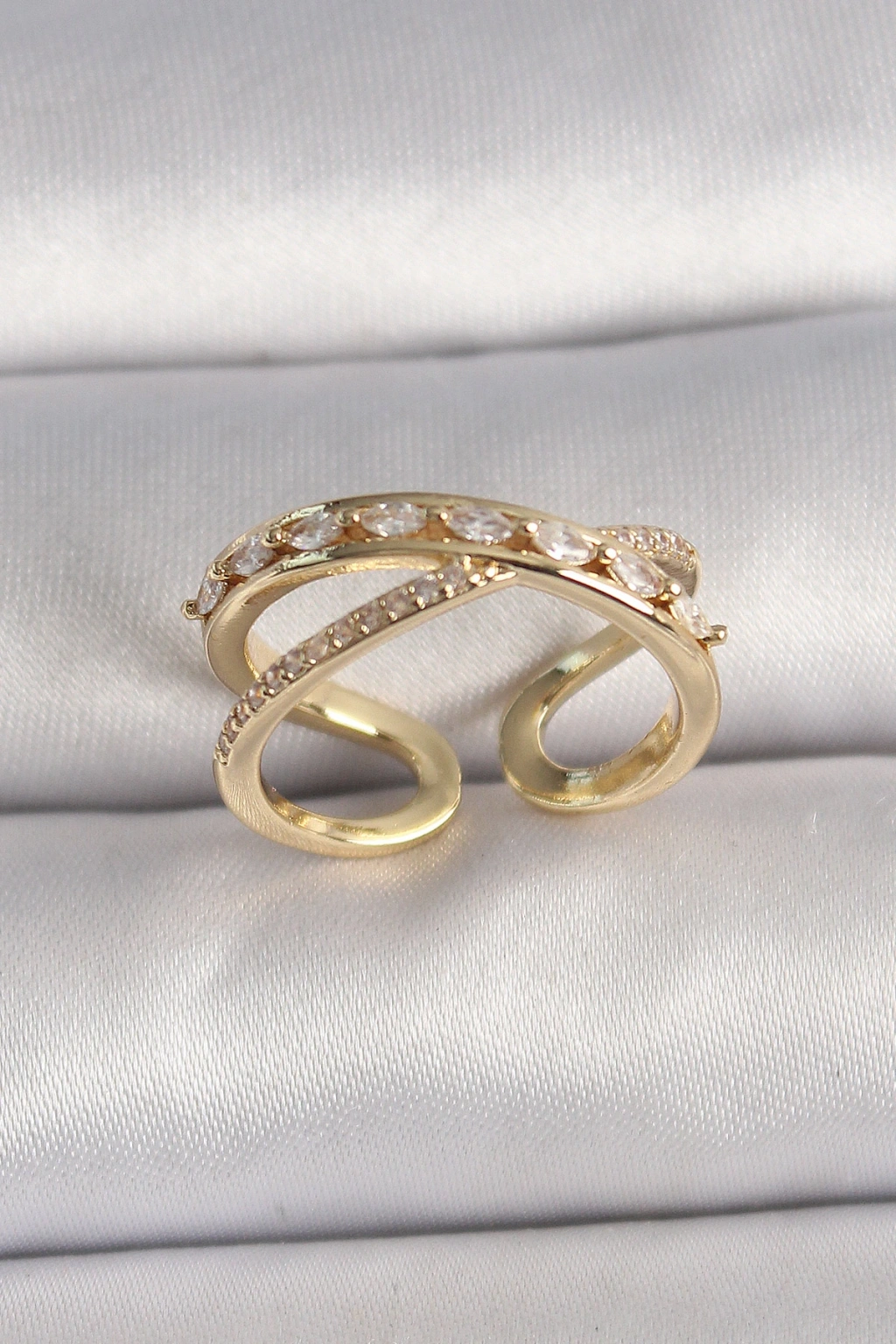 Pirinç Gold Renk Zirkon Taşlı Ayarlanabilir Kadın Yüzük