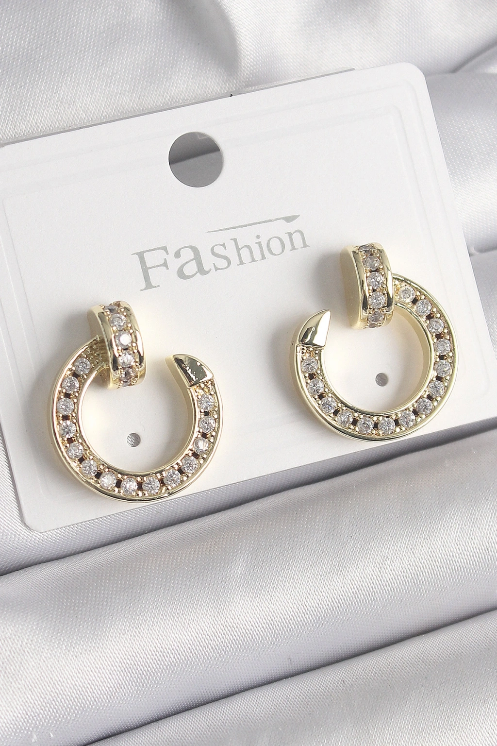 Pirinç Gold Renk Zirkon Taşlı Çivi Halka Model Kadın Küpe