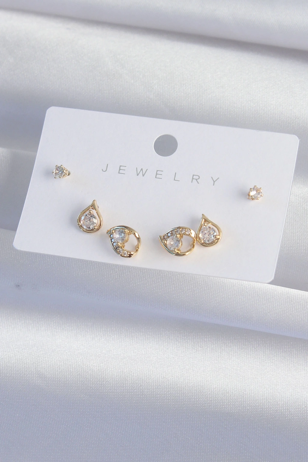 Pirinç Gold Renk Zirkon Taşlı Damla Model Küpe Seti