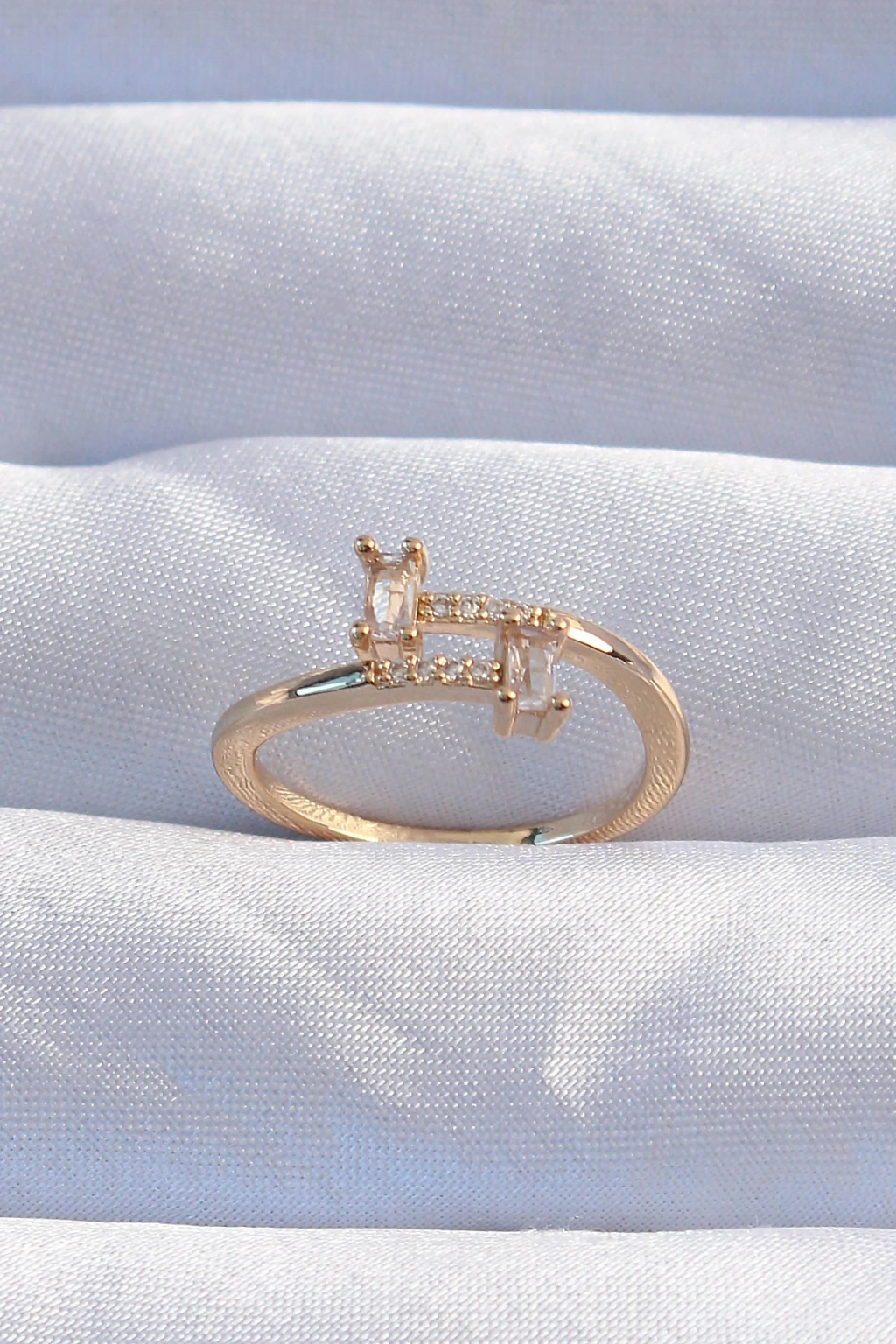 Pirinç Gold Renk Zirkon Taşlı Geometrik Ayarlanabilir Yüzük