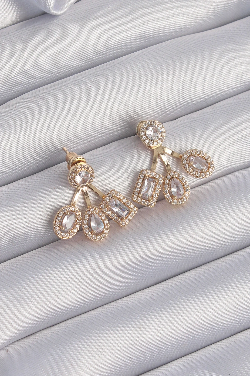 Pirinç Gold Renk Zirkon Taşlı Geometrik Model Küpe
