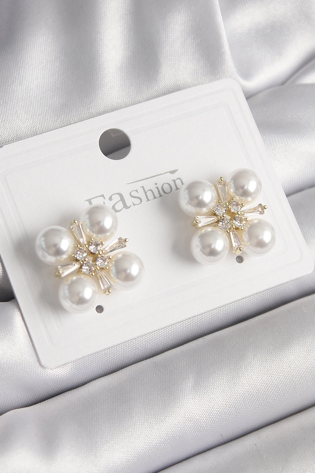 Pirinç Gold Renk Zirkon Taşlı İncili Kadın Küpe
