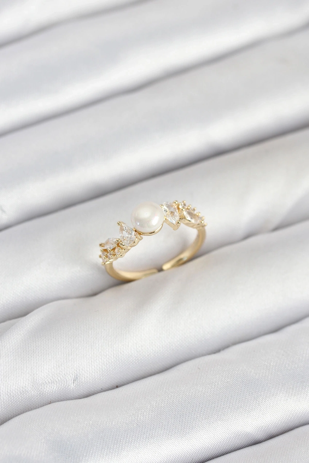 Pirinç Gold Renk Zirkon Taşlı İncili Model Kadın Yüzük