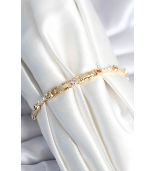 Pirinç Gold Renk Zirkon Taşlı Kadın Bileklik