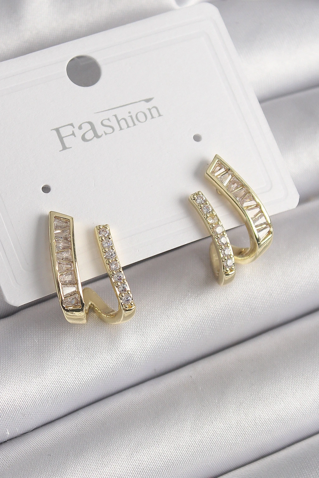 Pirinç Gold Renk Zirkon Taşlı Kadın Küpe